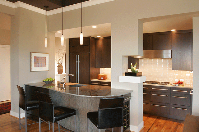 Cabinets can make or break a kitchen design, and Neil Kelly design consultant Fabian Genovesi likes to break up the cabinet layout. “I design kitchens that are not just long runs of cabinets but that are broken up into different sections,” says Fabian. “Don’t take up all the space with cabinets. Have floating shelves, open spaces, and room to hang wall art.”