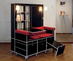 If you bored with your tiny room that feels crowded and full with furniture, the first thing you can do is buying multi functional furniture. That way you can maximize the existing space without arranging two different things inside. In this case the example is a cabinet chair with shelves for storage. A sofa bed is also a good example of multi functional furniture, it could be the best choice if you want the room to be a living room and a bedroom at the same time.